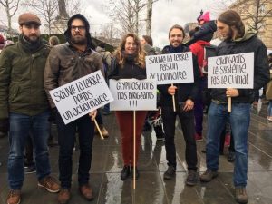 La police anti-émeute française CRS enlève de force des jeunes français et des militants écologistes alors qu'ils bloquent un pont...